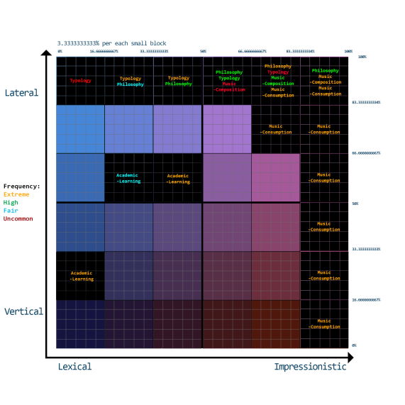 A portal of context refers to the ability of a person to, in any position on a chart, open up a portal that allows for the instantaneous movement from two different places (no matter how radically opposing the positions may seem). What then is the condition for opening these portals up? The way I see it there is two methods which will open up portals: Conscious learning of a range's cognition approach and latent subconscious capacity for a cognitive approach. The trigger then will be facing a context (an information input) that forces the subject to open up a portal. This may not always be easy, in fact often times even with pre-established portals this will be very difficult, truth is that it is too contextual and individualized to say here. I'll give an example of a person who goes from a hyper impressionist range to a B or lexical A range when doing something that could be said to innately resemble lexicality (under different contexts), we'll say typology (you are literally putting into a concise and consistent model a person; of course you can do typology impressionistically though). It's important to note these contexts do not always appear only in singular ranges. They occur all throughout and have tendency ascribed to them. I see no reason why this person should have to either chartloop or go through the bordering types to the left when cognition to me is designed to be versatile (and not literally on a chart or axes lol). One of the most common presuppositions that I am against, although not entirely as the movement of a person is contextual, is the idea (or perhaps more an implication) that you will always move through bordering types rather than skip past them. I've never been a fan of this form of restricting movement (along with it sometimes comes predetermined speed for types which is also something I am not a fan of).